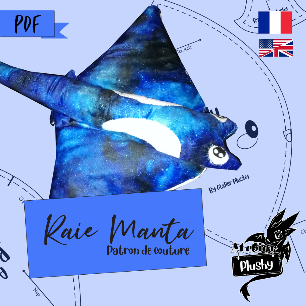 Manta ray plush sewing pattern to download in pdf ! Create your own creations !